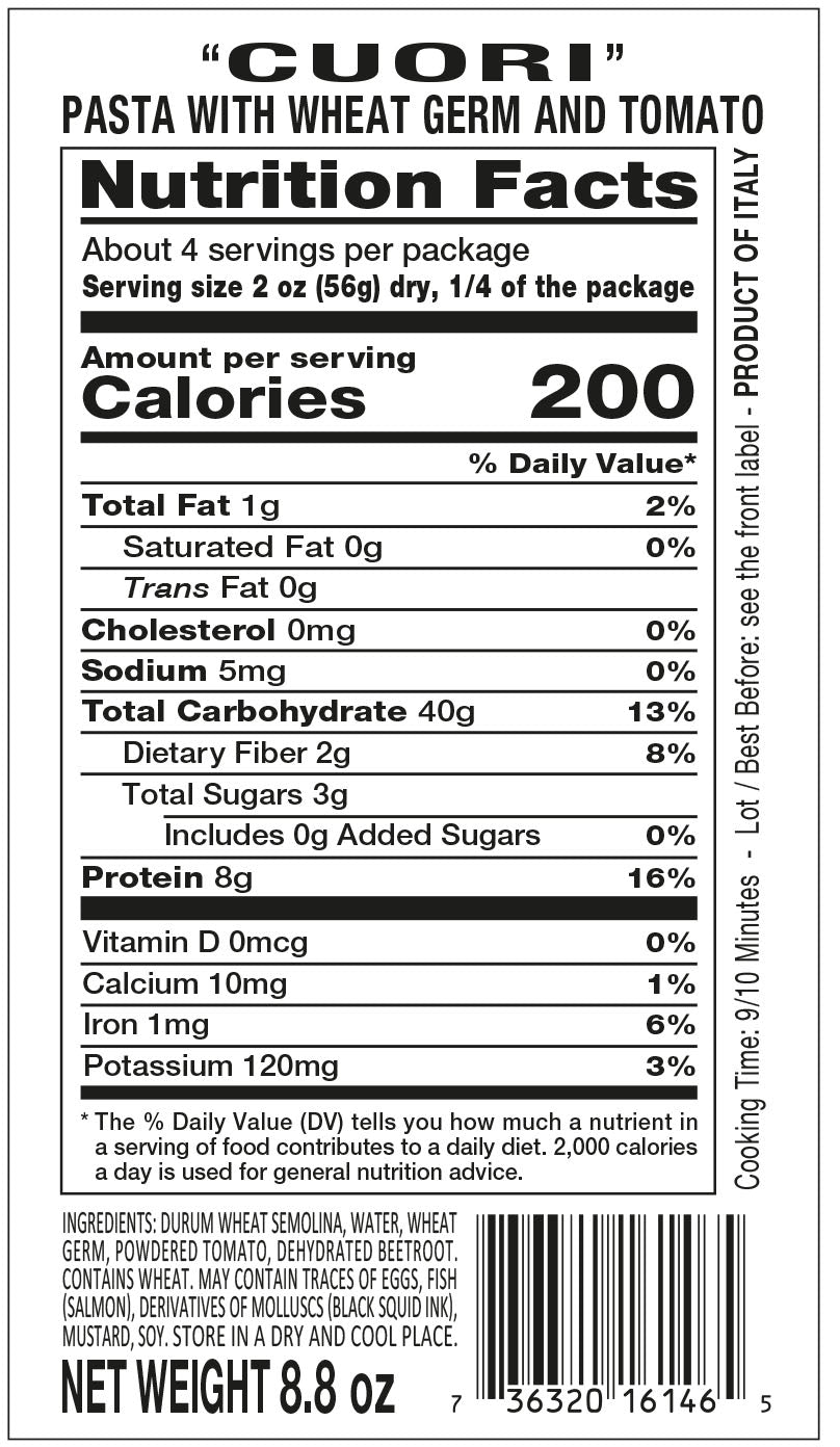 Antichi Poderi Toscani Hearts with Tomato and Wheat Pasta 8.8oz/250g