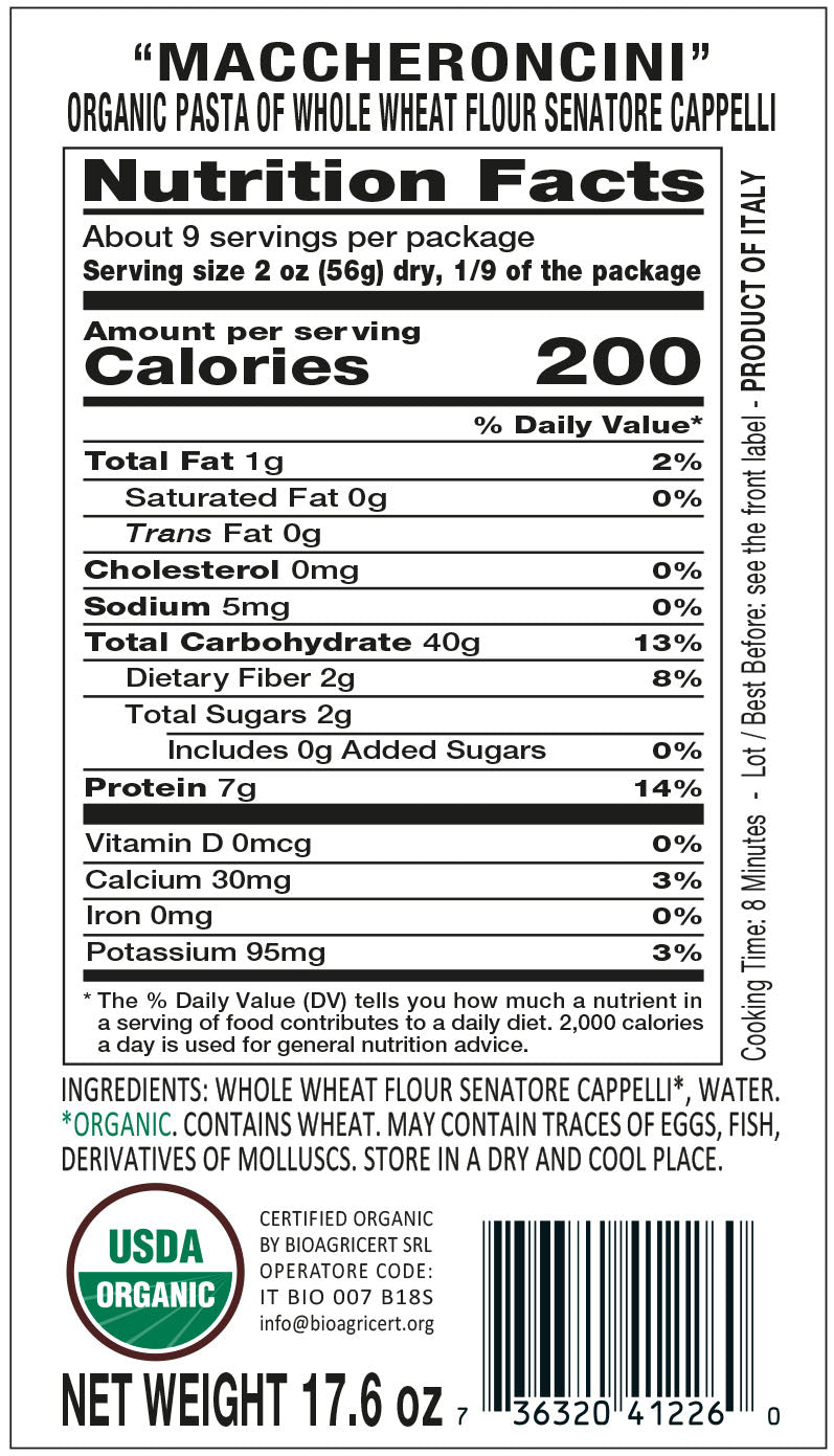 Antichi Poderi Toscani Organic Whole Wheat Maccheroncini Senatore Cappelli Pasta 17.6oz/500g